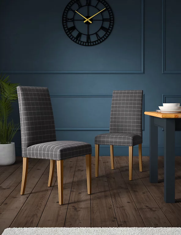 Create a statement in your dining area with these bold checked chairs from our Alton range. The set of two features a clean and modern design where a slender high back is complemented by minimal angular legs.