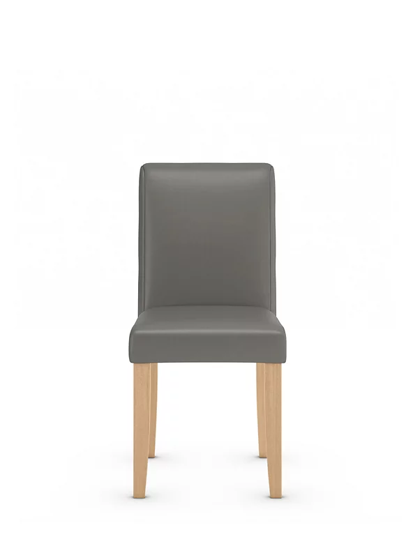 These leather-effect dining chairs from our Milton range will make a stylish addition to your home. They have an elegant high back which is padded back for comfort, and complete with pinched detailing for a premium feel. They are set on four sturdy wooden legs, with a neutral beech finish that’ll add natural warmth to your dining area.