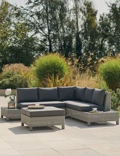 Prepare for feasts and fun in the garden with this modular seven seater Marlow lounge set. Beautifully woven from synthetic rattan and complete with weather-resistant cushions, this statement seven-seater is easy to wipe down after outdoor dinner parties. This multifunctional set comes with two footstools and a table to create the perfect setting for entertaining guests.