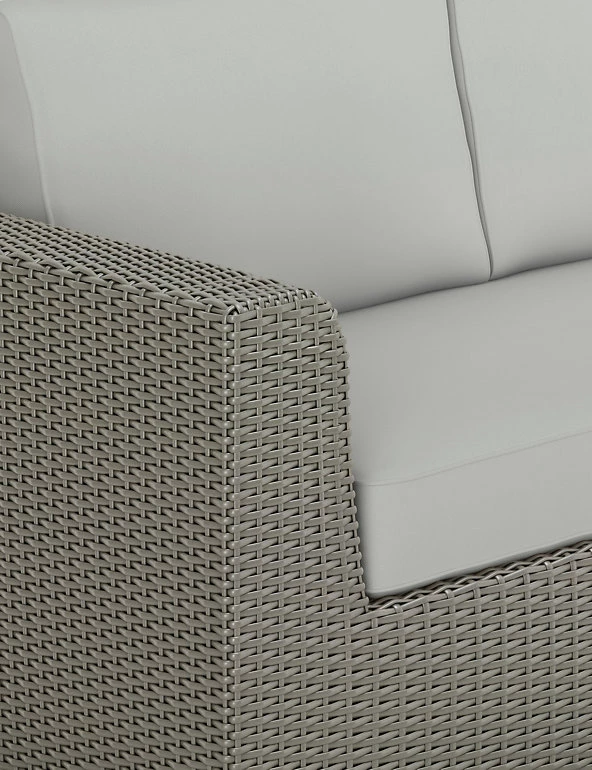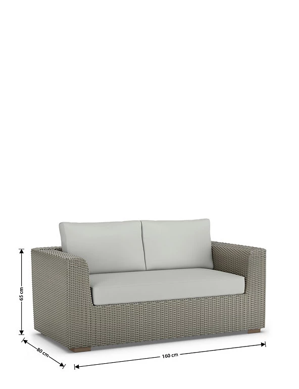 Whether unifying the neutral tones of your outdoor decor or contrasting against brighter, bolder styles, this grey Marlow outdoor sofa is a complementary addition to any garden. The contemporary style is crafted using synthetic rattan, a weatherproof, durable material, so you can be sure this sofa will withstand whatever nature throws at it. The comfortable matching cushions are also water repellent, giving you years of use without any blemishes. It’s a perfect piece of garden furniture, but the Marlow sofa works just as well indoors – great for the conservatory. Treat yourself to an afternoon doze in the sun or entertain your friends and family with this versatile outdoor piece.