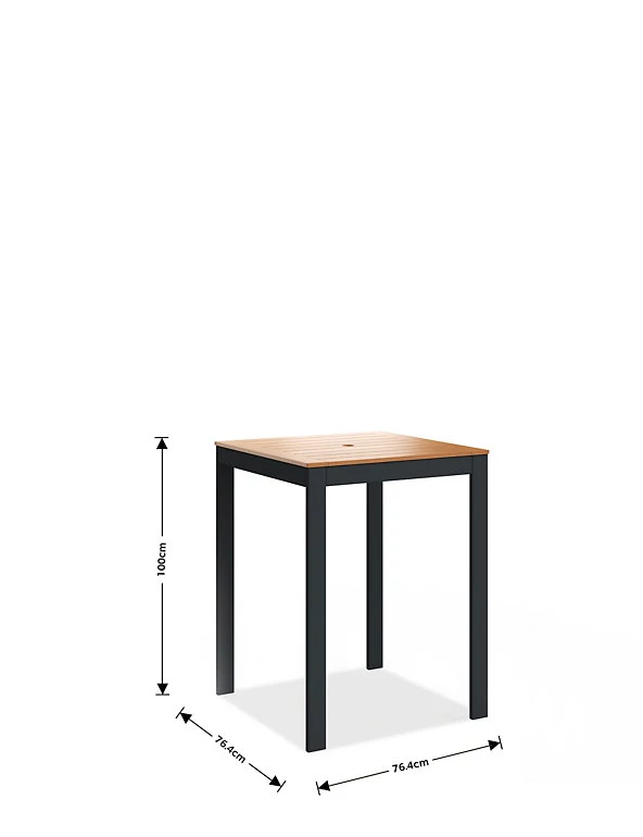 This Porto high bar-style table and chairs set is a great way to enjoy al fresco dining with friends and family. The set includes a metallic designed table and four matching chairs that feature a powder coating for a protective finish.
