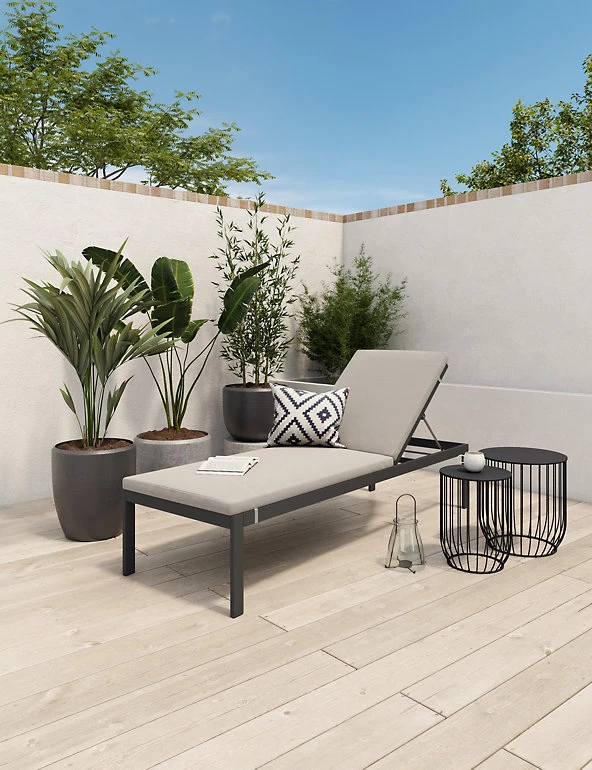 Relax and unwind in the sun with this Porto sun lounger. Fully cushioned for extra comfort, it’s designed with a supportive and adjustable backrest that can be fully flattened. It features a durable protective finish with a stylish wooden effect and sturdy metal legs.