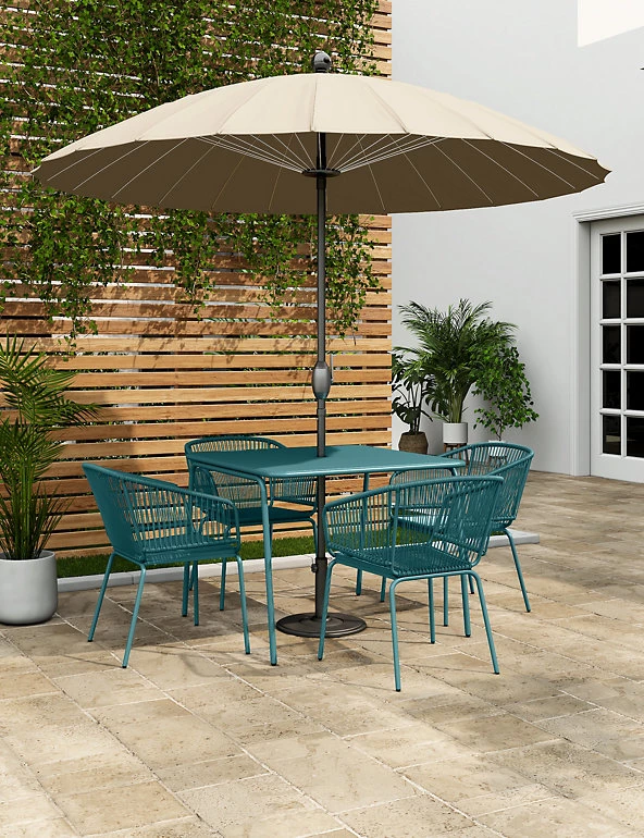 Create a shady spot in your outdoor space with this curved Shanghai parasol, which takes inspiration from Eastern design. It’s constructed from durable metal with a special powder coating for a weather-resistant finish.