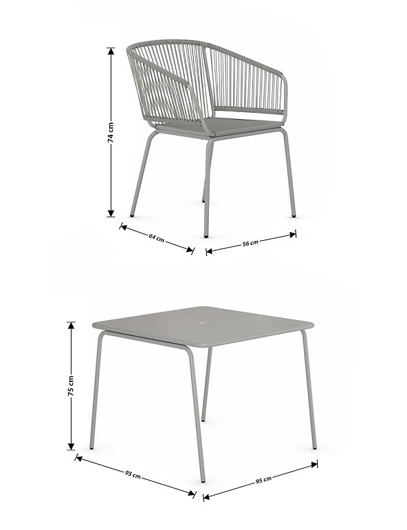 - Table: H75 x W95 x D95 cm