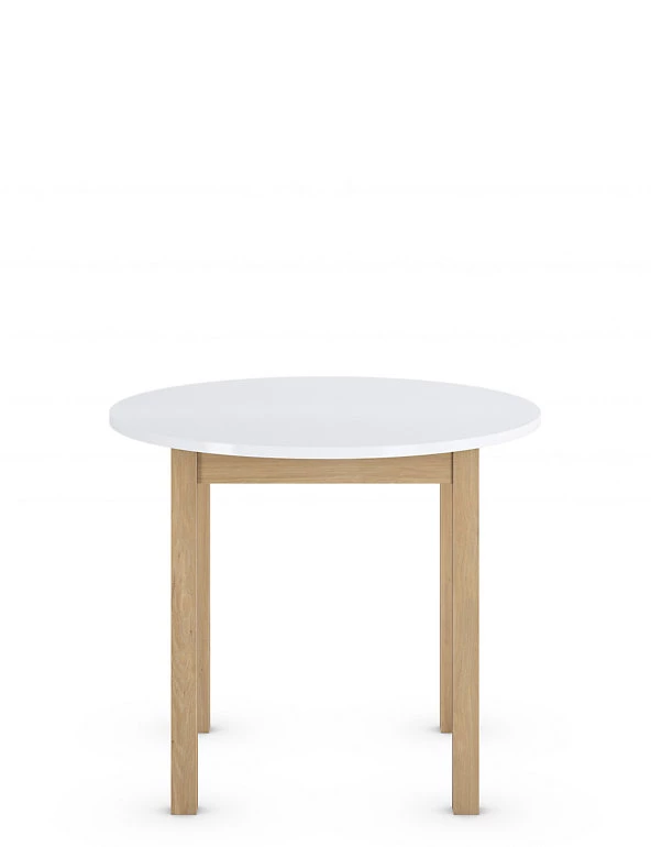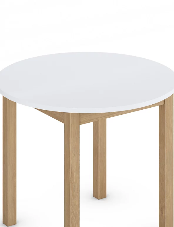 Bring some elegance to smaller dining spaces with this round table from our Loft range. The size and shape make it perfect for fitting into cosy spots, while the slender, oak-effect legs add an elegant touch. Pair with other items from the Loft range for a matching look.