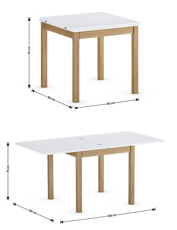 Our Loft dining table combines a clean, contemporary look with a small, square shape that’s ideal for modern living. When you have guests, you can easily add extra places with its extendable flip-top design. Coordinating dining chairs, and other pieces from the Loft range, are available.