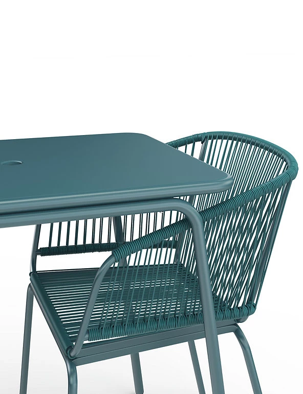 - Finish: Powder coated metal & synthetic wicker weaving