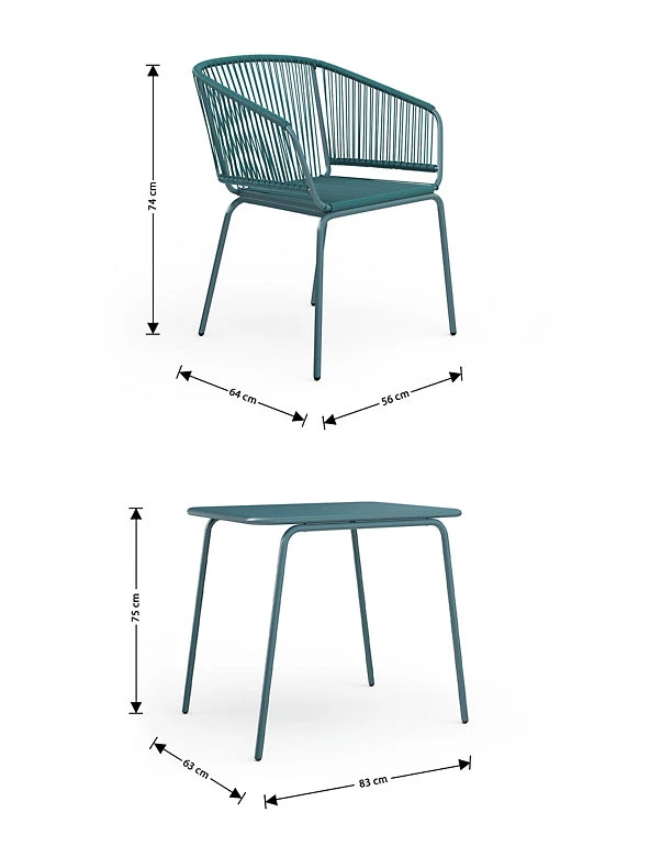 - Bistro table: H74.5 x W 63 x D83 cm