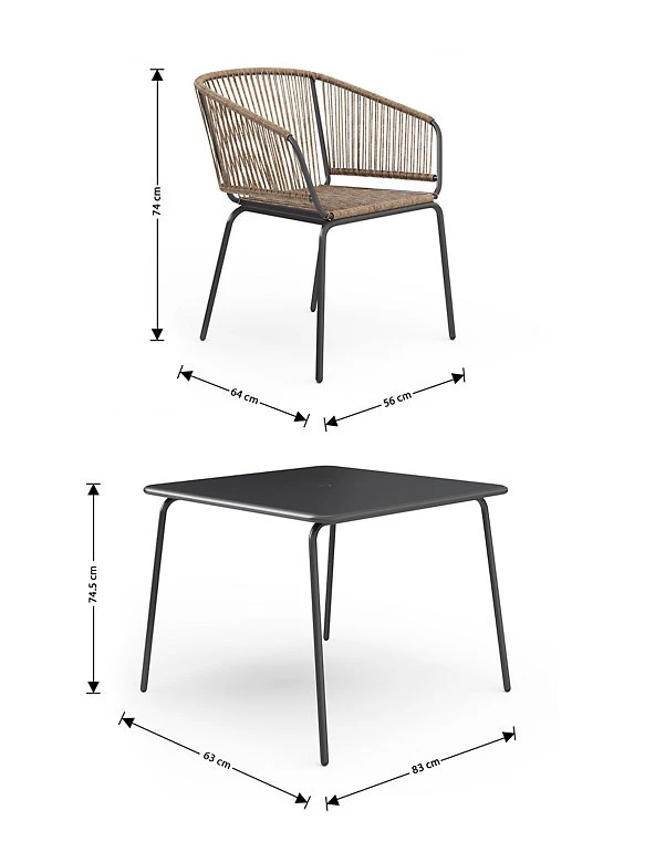 - Bistro table: H74.5 x W63 x D83 cm