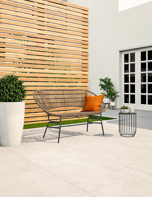 This garden sofa from our Lois range features a clean, minimalist style while also adding a touch of colour to any garden, patio or conservatory. The fashionable woven cage design has a powdered coated finish to ensure it’s both comfortable and durable.