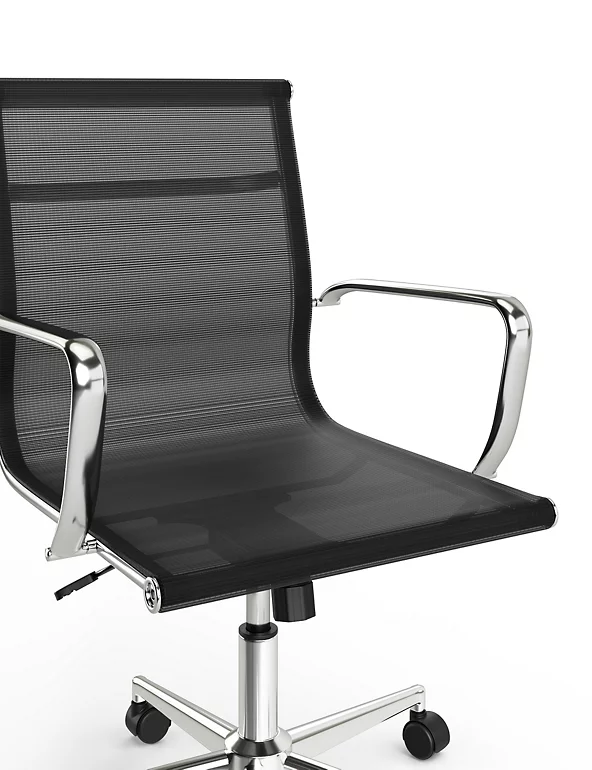 Upgrade your home office with this swivel-tilt chair from the Latimer collection. A mesh back offers breathability, while the chrome base and arms bring a contemporary look to the design. This stylish and practical piece has an adjustable seat for the perfect height.