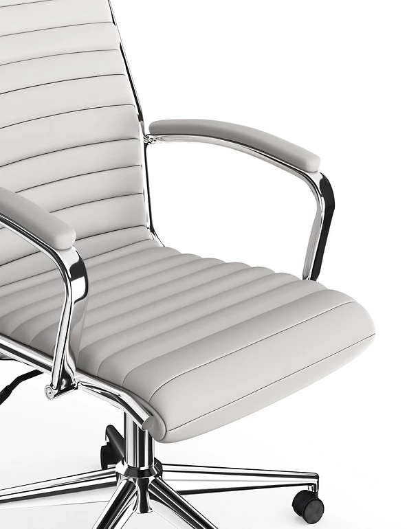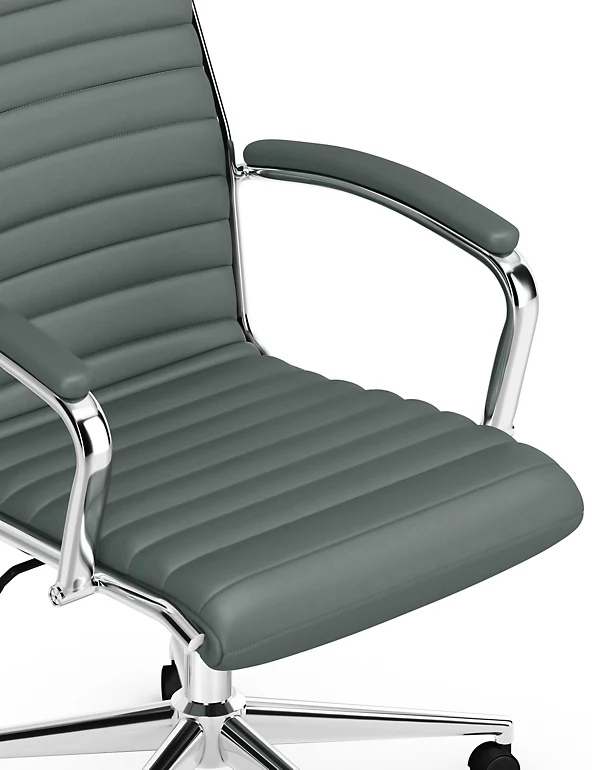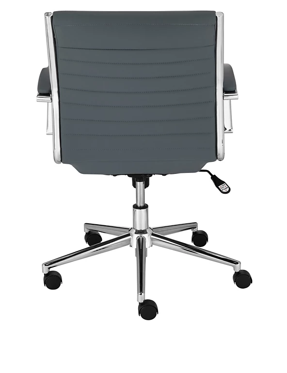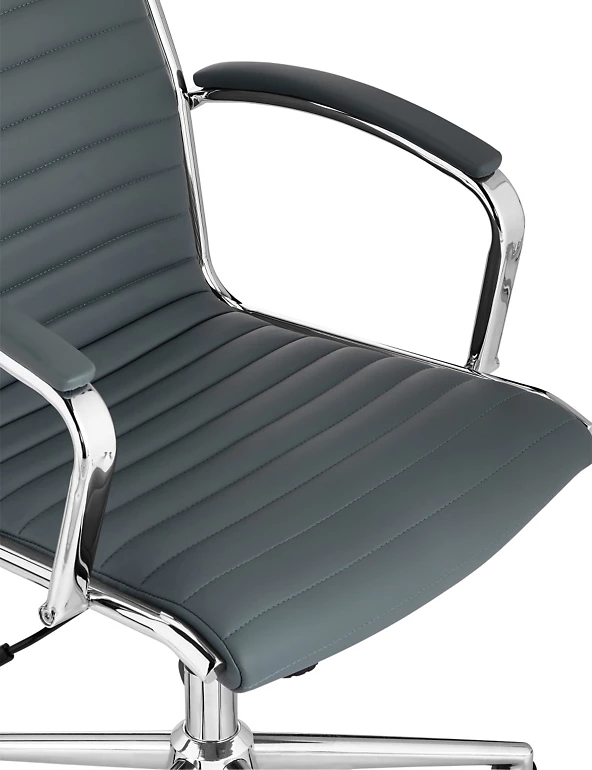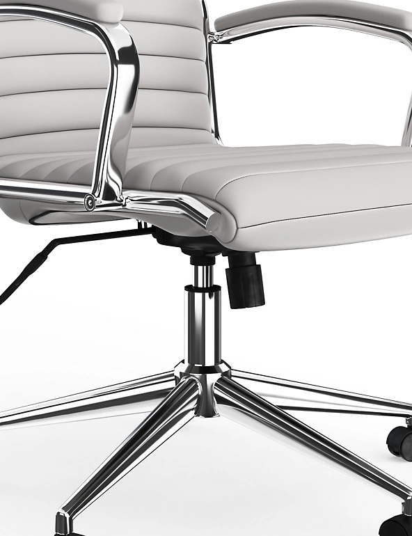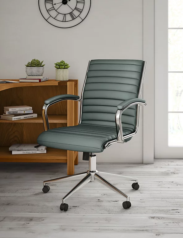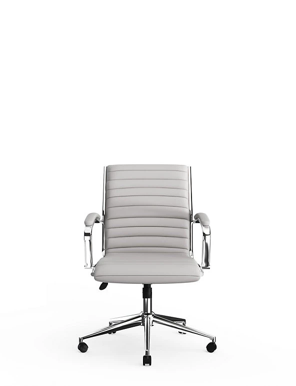 Comfort and sleek, modern style go hand in hand with the Latimer office chair. It combines a soft padded seat with a sturdy metal base and wheels that let you move around your workspace with ease.