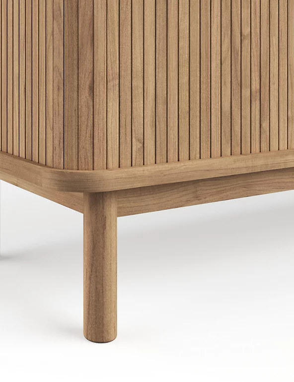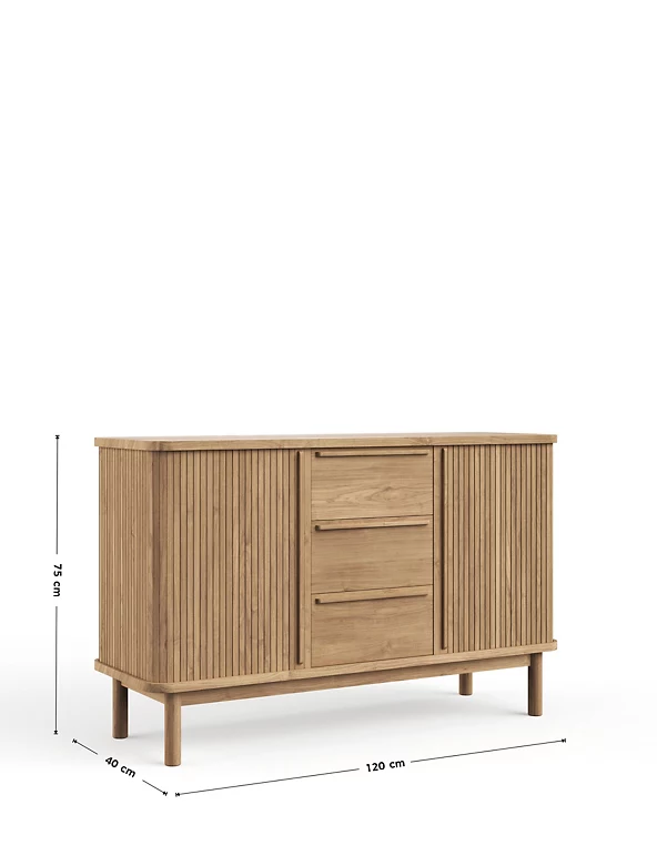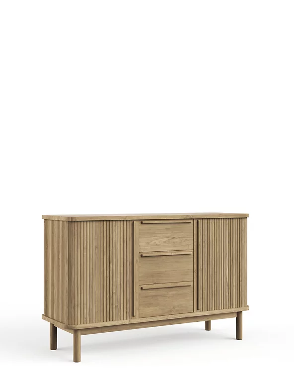 Crafted from solid wood and with a veneer finish, the Cali sideboard is a timeless piece for your home. It’s designed with three drawers for your daily essentials, and two sliding doors for easy access to storage space within. Refined panel detailing on either side enhances the chic look.