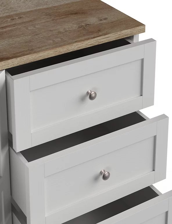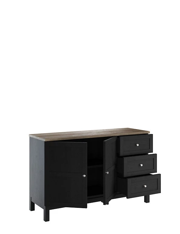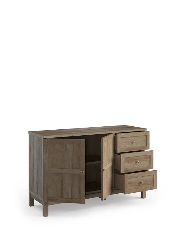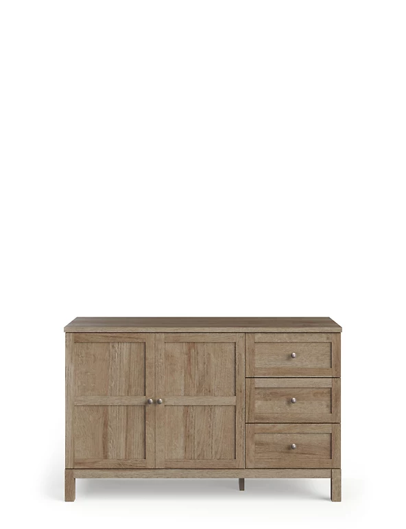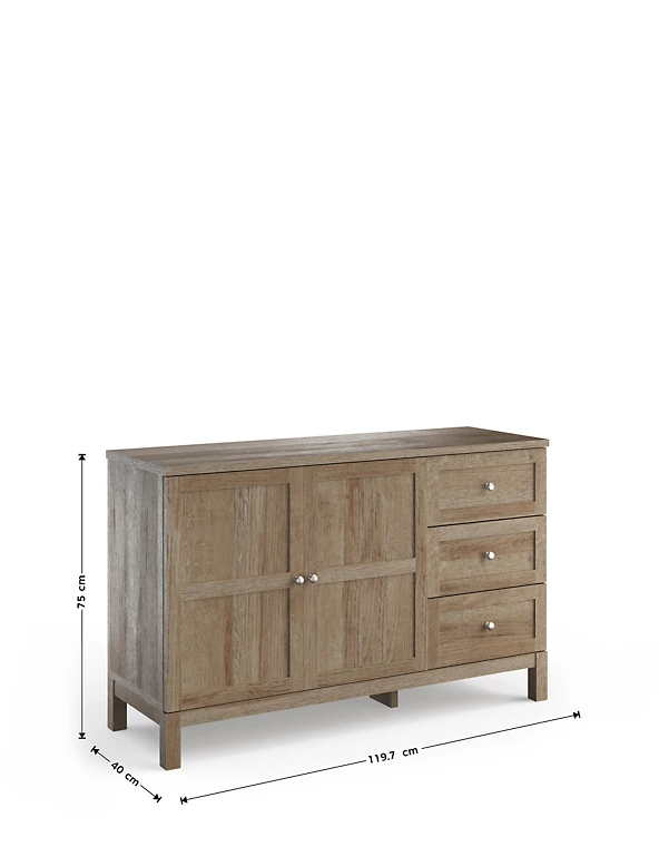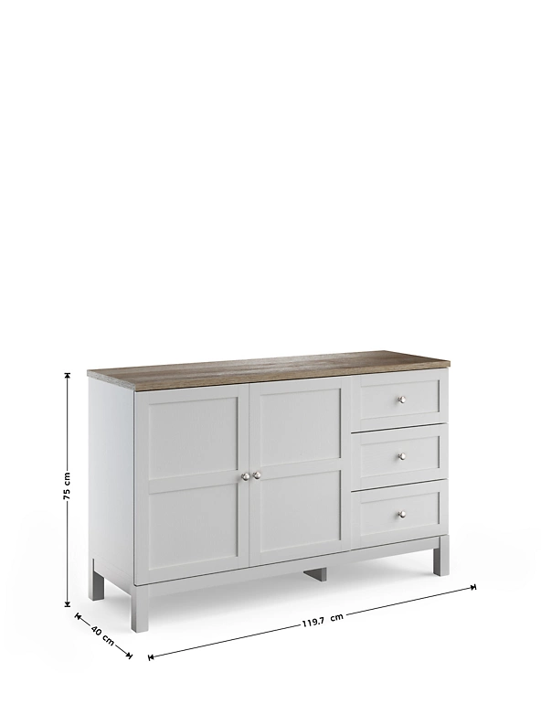 Add some coastal charm to your home with our Salcombe sideboard. It includes a double-door cupboard with a central shelf to make the most of the space. There are also three drawers for organising your smaller items. Brushed nickel handles add to the refined finishing touches. It comes in three different finishes to fit in with your home decor. Matching pieces are available from our Salcombe range.